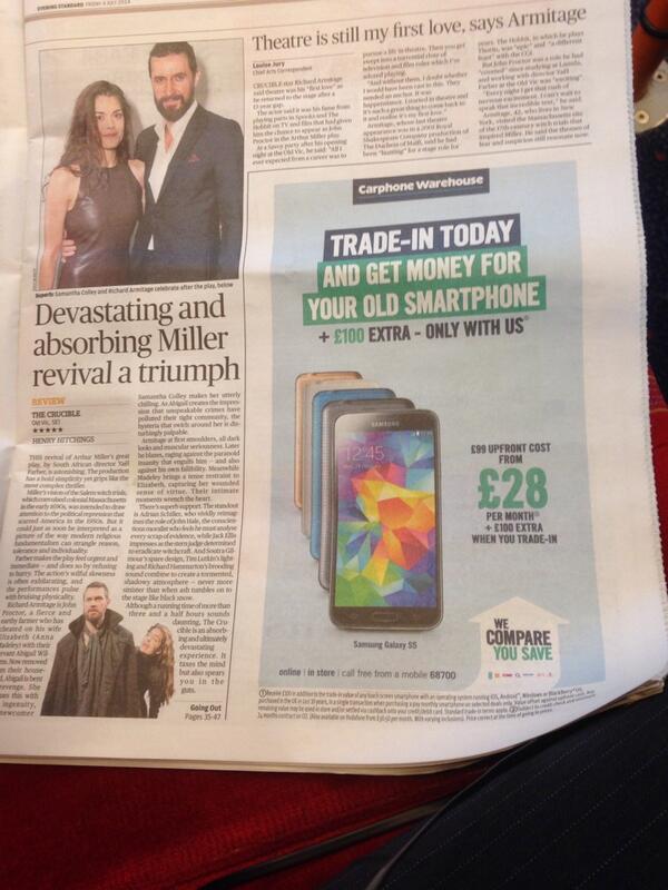 Superb: Richard Armitage and Samantha Colley in The Crucible ©Alastair Muir